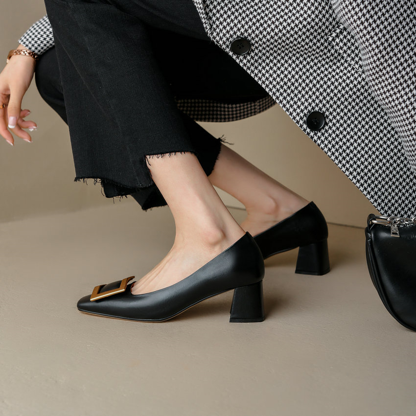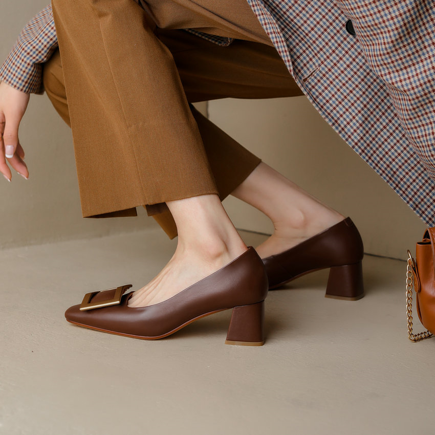 Elevate your style with our Footens Shoes Ray Women's Dress Leather Pumps. Handcrafted with genuine cow leather and pigskin lining. these pumps boast a luxe texture and durability. The square toe and heel add a timeless touch. while the slip-on design and platform elevate comfort. Perfect for any season. these pumps are a must-have.