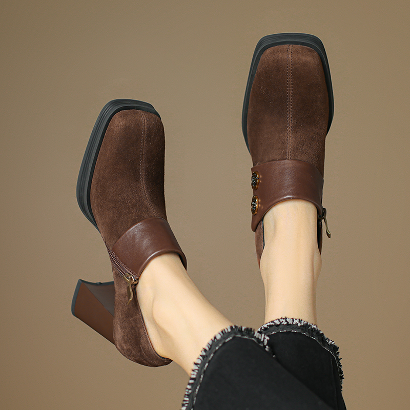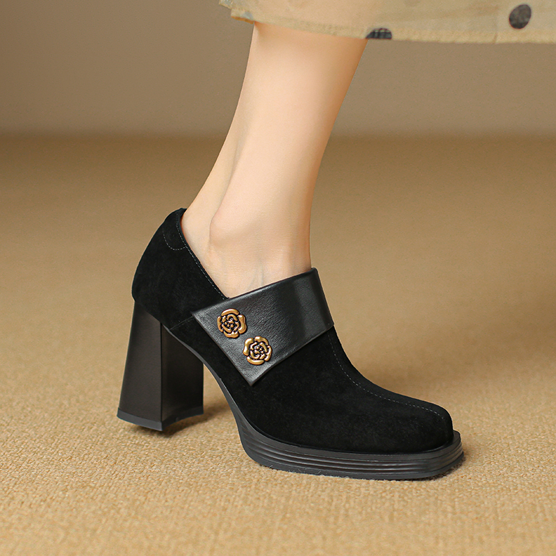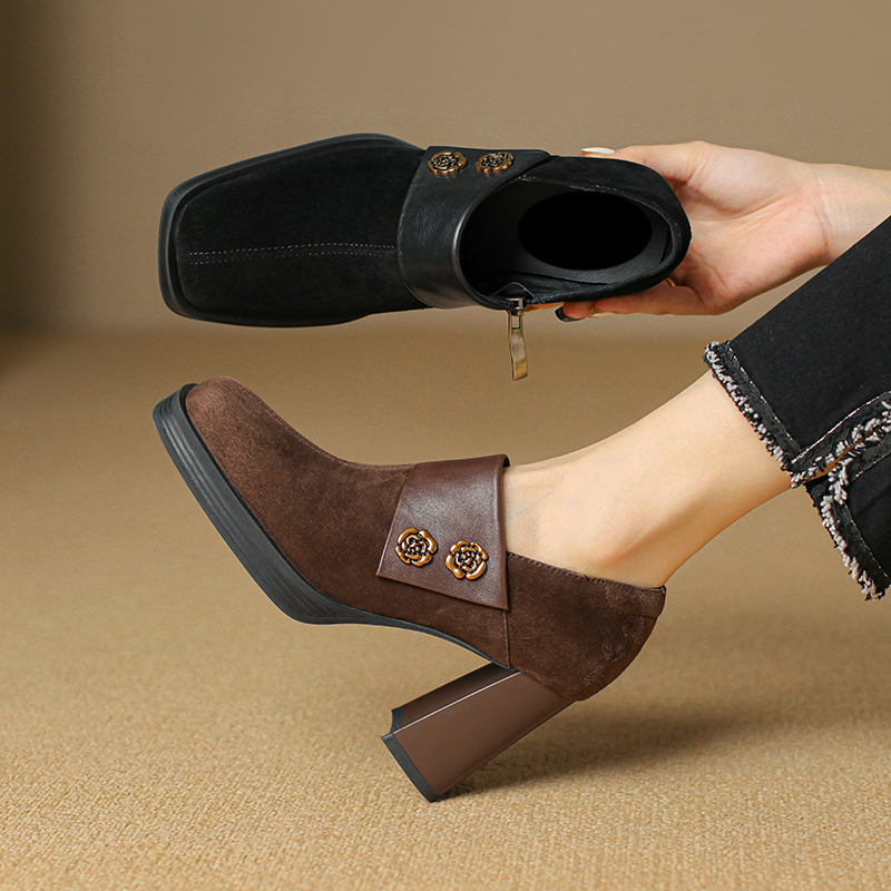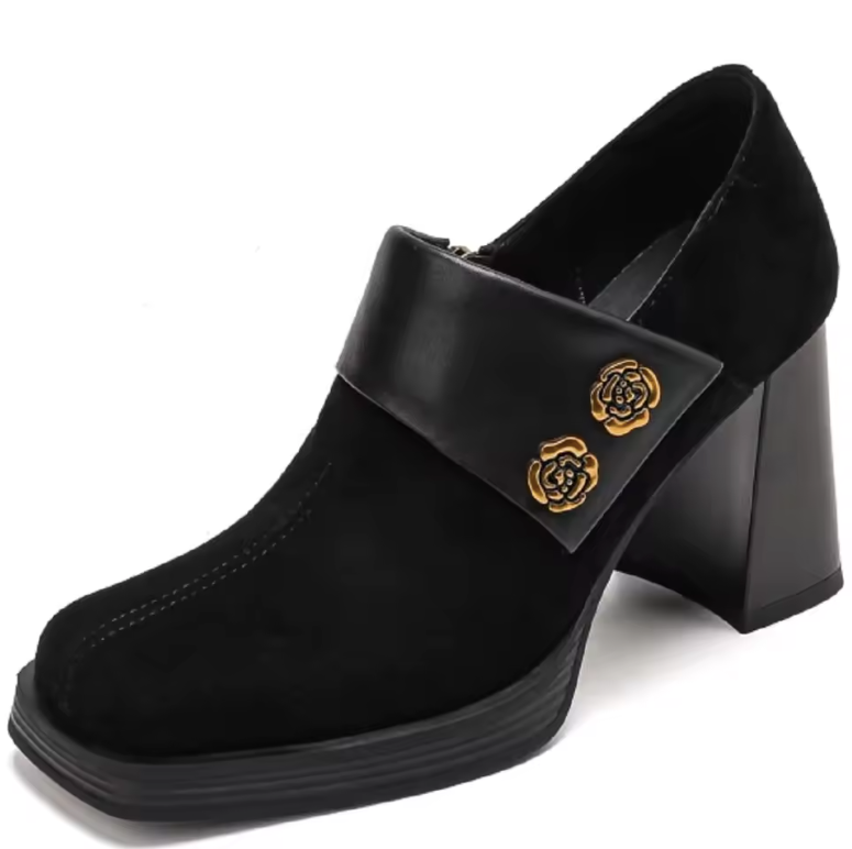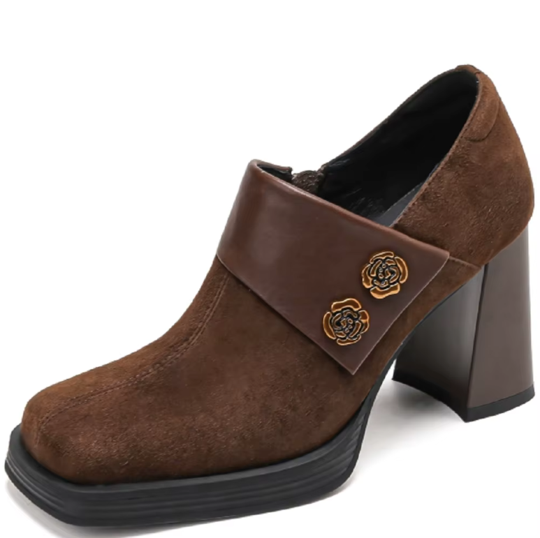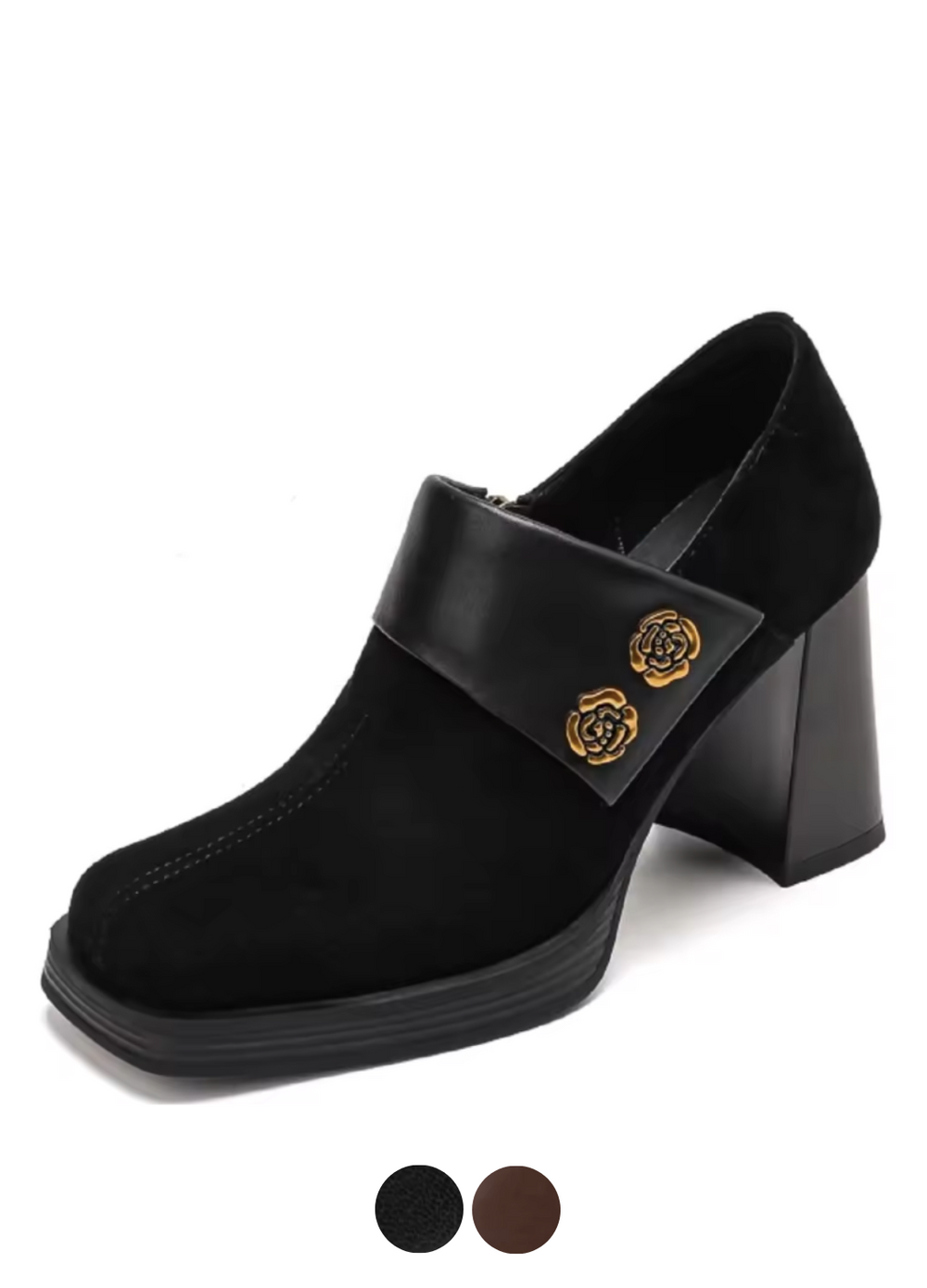 Indulge in luxury with Footens Shoes Romina High Heels. The genuine leather upper and slip-on closure offer comfort and elegance. The square toe shape and 4" square heel add a bold touch. Made to order with less waste. these pumps are perfect for any season.