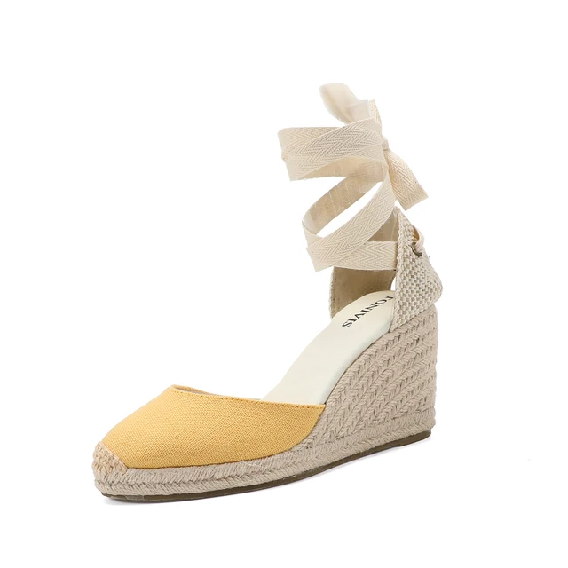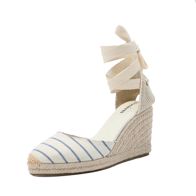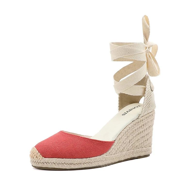 Footens Shoes Rosalia Wedge Espadrille Sandals are the perfect blend of style and comfort. The cotton fabric upper and genuine leather lining provide comfort and breathability for casual occasions. The open-side vamp and lace-up closure add a fashion-forward element. Take advantage of these playful wedges!