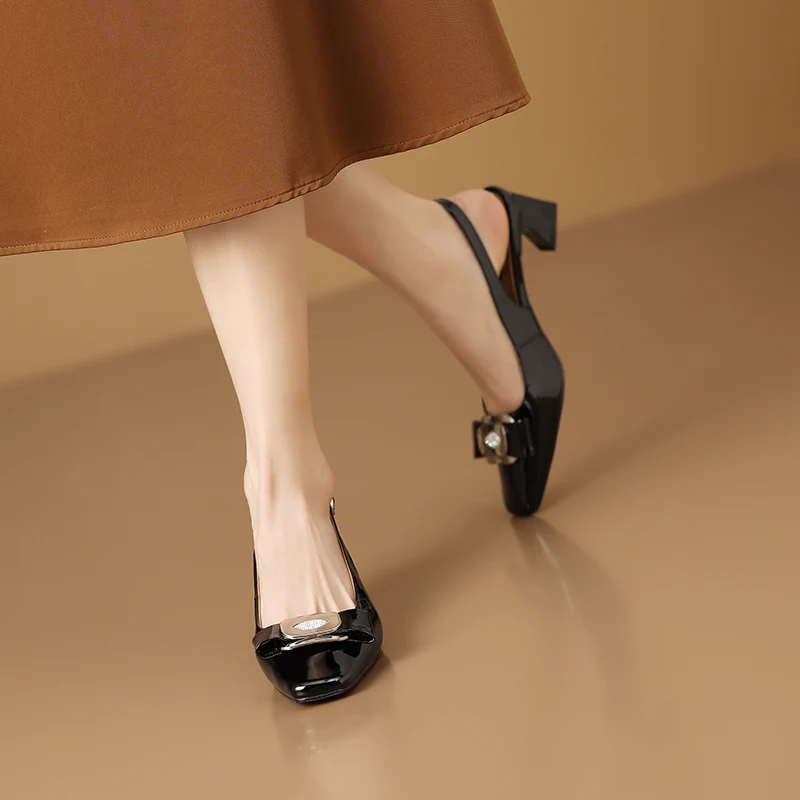 Elevate your style with Footens Shoes Salma Women's High Heels Square Toe Dress Sandals. Handcrafted with genuine leather and a 2" square heel. these modern sandals provide both comfort and sophistication. Made to order with minimal waste. join the trend and get yours today.