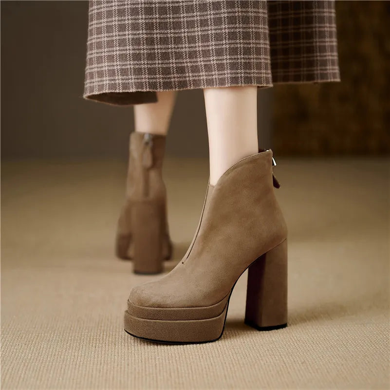 Flaunt your style with Saola Women's Boots from Footens Shoes. Crafted from genuine leather. pigskin. and kid suede with a square toe and 5" heel. these boots are designed to be fashionable. comfortable. and durable. With a zip closure. the rubber sole provides convenience and stability. Its unique design gives a touch of extra style and elegance. You will look splendid at any event. Available in black and apricot.