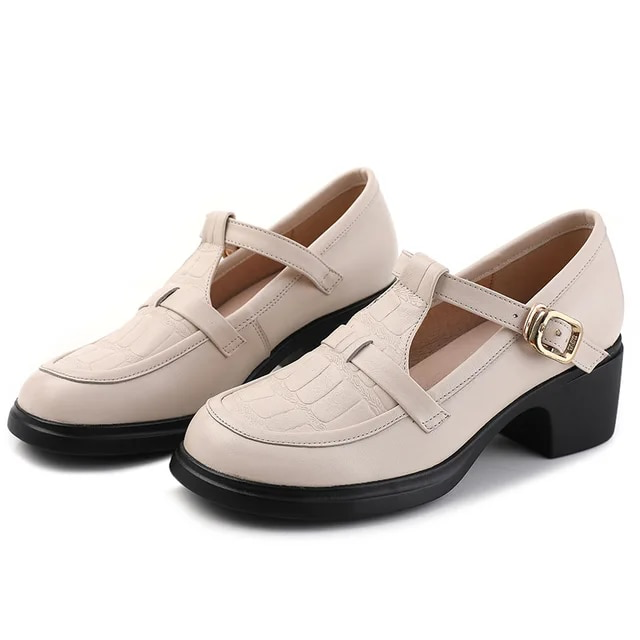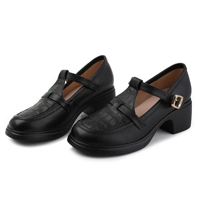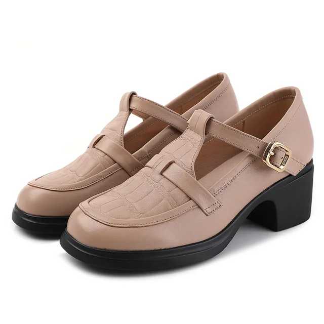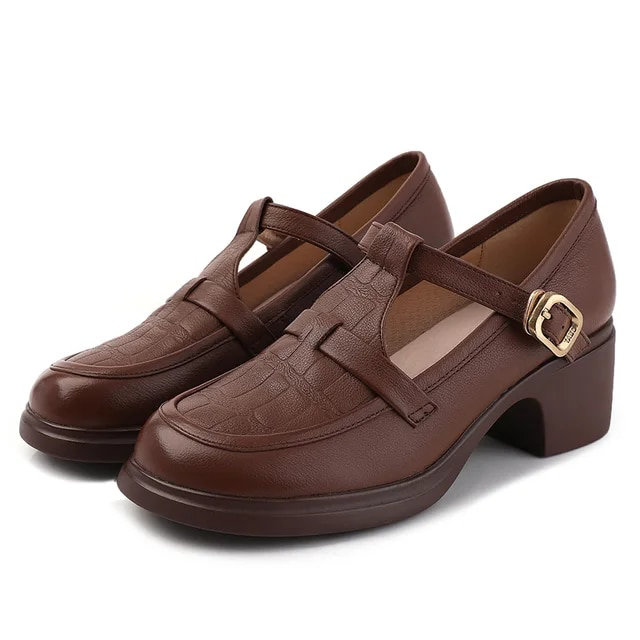 Sara Women's Square Heel Pumps by Footens Shoes are crafted with genuine cow leather for a stylish look and comfortable fit. The pumps feature round toes. square heels. and a buckle strap closure for a secure fit. With a microfiber lining and bonded leather insole. these pumps provide maximum comfort. The sole is made of rubber for enhanced durability and wear. Available in a variety of sizes. perfect for every occasion.