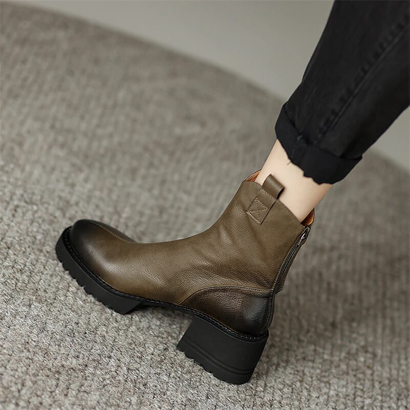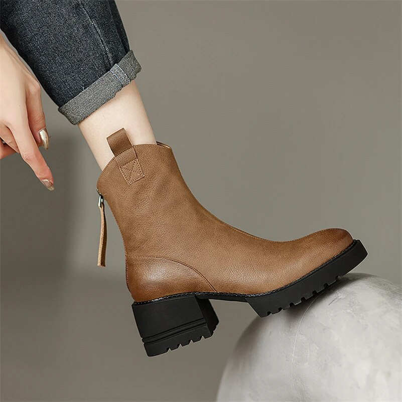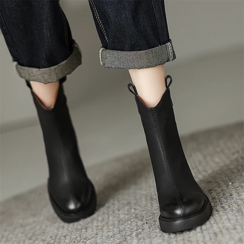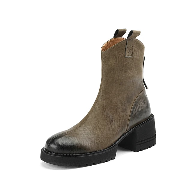 Sayuri Women's Western Short Winter Boots from Footens Shoes combine a high-quality genuine leather shaft and upper with a sturdy rubber outsole and a breathable pigskin insole for long-lasting comfort. The zipper closure provides a secure fit and the square heel adds stylish sophistication. Enjoy worry-free wear all winter long in these fashionable round-toe boots by Footens Shoes.