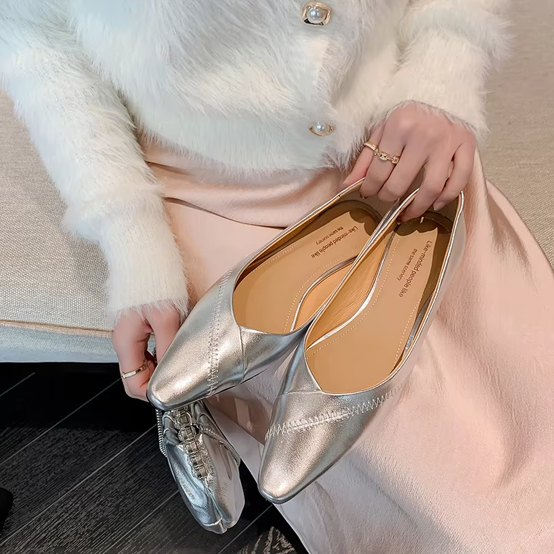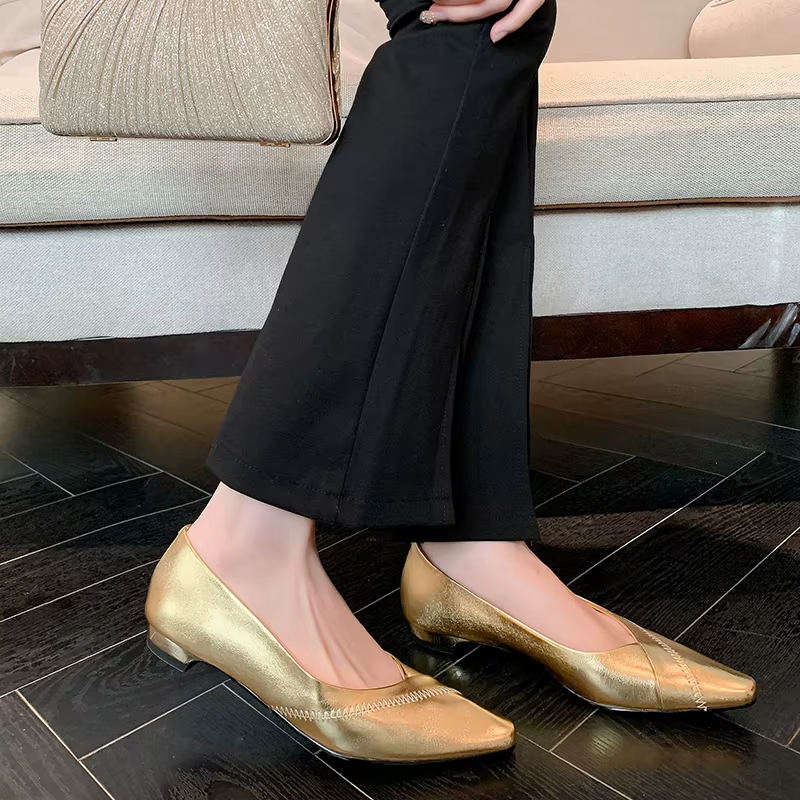 Add a sleek touch to your classy outfit by donning the Footens Shoes Selena Women's Pointed Pump. Crafted with genuine leather and full-grain leather insole. these slip-on pumps offer luxurious comfort. The pointed toe shape and low 1" heel add a sophisticated touch to any outfit. Perfect for spring or autumn.
