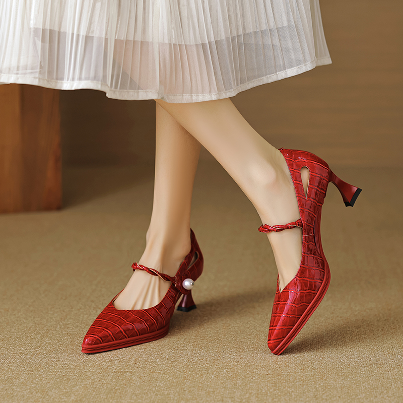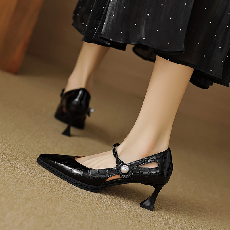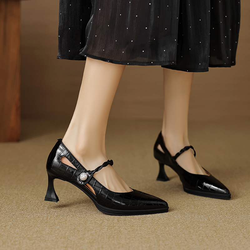 Elevate your shoe game with Footens Shoes Sharol Women's Pointed Toe Leather Pumps. Handcrafted with genuine leather and a slip-on design. these pumps offer a luxurious and exclusive feel. The pointed toe shape and rubber outsole provide a perfect fit while adding a touch of elegance. Made to order for less waste.
