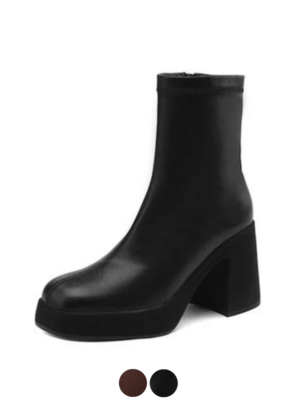 Experience the perfect combination of comfort and style with the Sharon Women's Square High Heels Platform Boots from Footens Shoes. Featuring Microfiber. TPR. and Genuine Leather uppers along with a Pigskin insole. these modern ankle boots feature a Round Toe. a Square Heel. and a fashionable Zipper element. Ideal for all seasons. these stylish boots are perfect for all occasions.