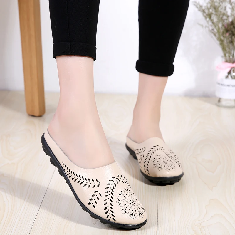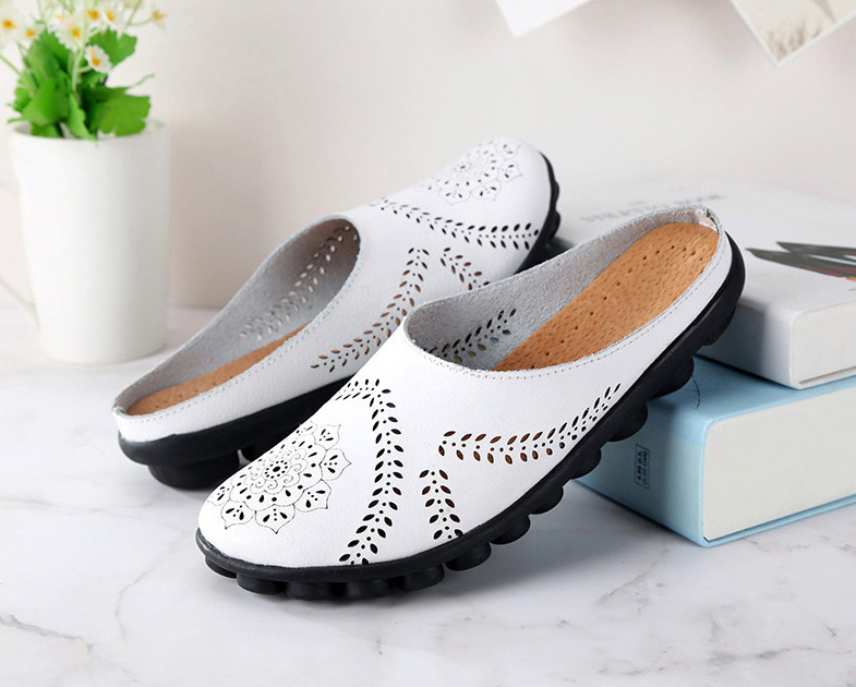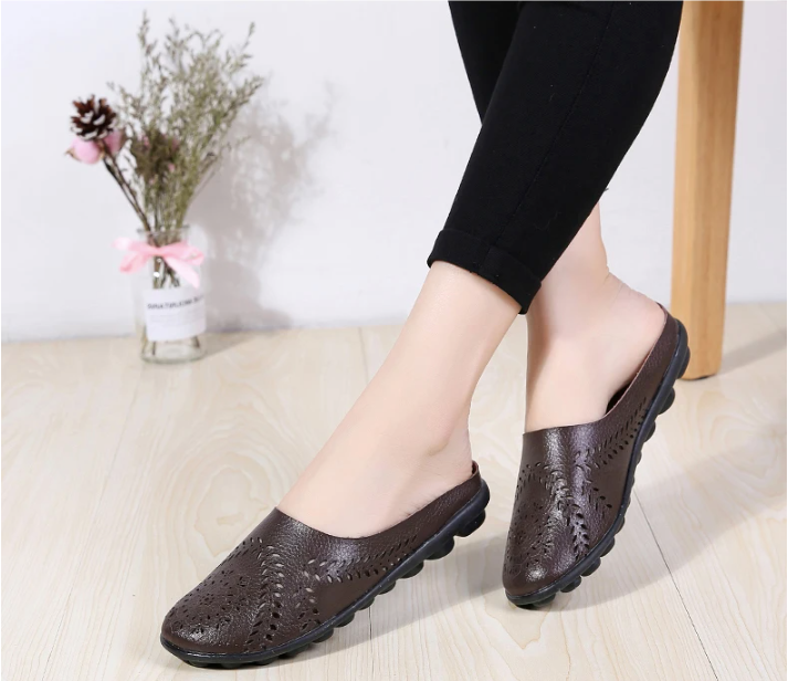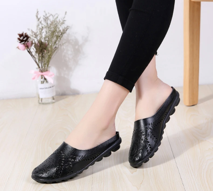 Experience ultimate comfort and style with Shiana Women's Breathable Mule from Footens Shoes. Made from genuine leather. these flats feature a round toe and a slip-on closure for easy wear. The breathable material and rubber outsole provide a perfect fit. while the flower design adds a touch of fashion. Perfect for summer and spring. these mules will keep your feet feeling cool and looking chic.