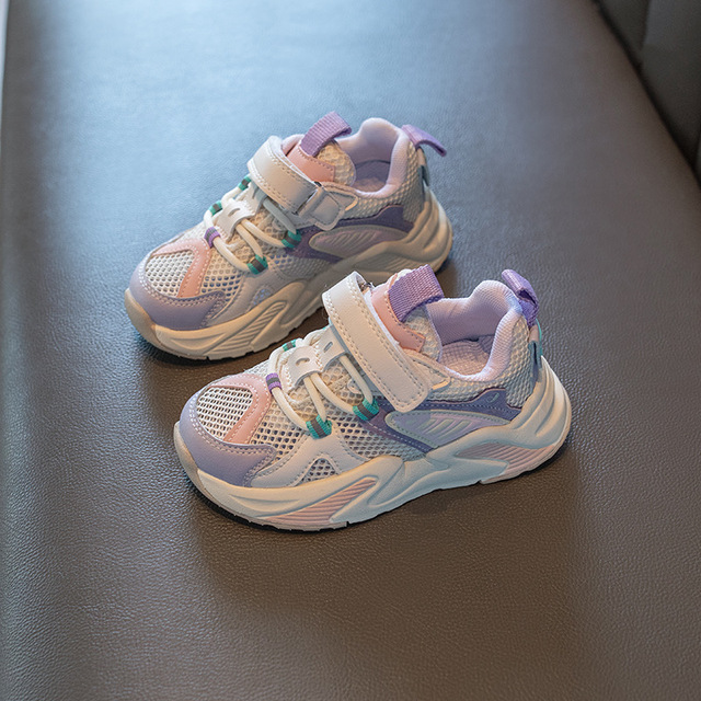 These Styl kids' shoes have a stylish look that's great for any occasion. The deep-cut sole is perfect for running. while the breathable mesh upper means feet stay cool and dry. Hook and loop closures make it easy to take on and off while the padded collar adds comfort and support.