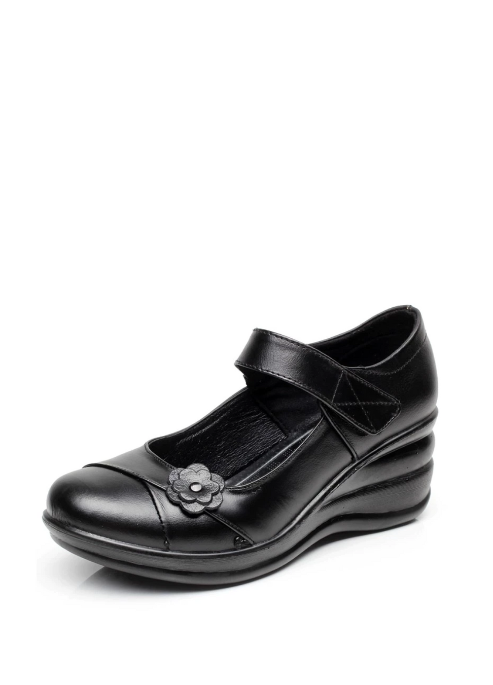 Crafted from genuine leather. Footens Shoes Valerie Platform Shoes feature a round toe and rubber outsole for comfortable. slip-on wear. With a polyurethane lining and rubber insole. these flats are perfect for both spring and autumn and are designed to fit true to size. Elevate any outfit with these stylish and practical shoes.