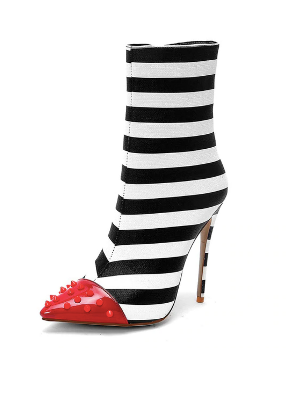 These Women's Cangrejillo Rivets Side Zipper Boots by Footens Shoes are expertly handcrafted with premium microfiber for a durable and comfortable fit. The pointed-toe design and ankle height offer a sleek and stylish appearance. while the short plush lining provides warmth during the colder seasons. The rubber outsole ensures stability and the 5-inch heel adds a touch of height. Perfect for winter and autumn. these boots are true to size for a perfect fit.