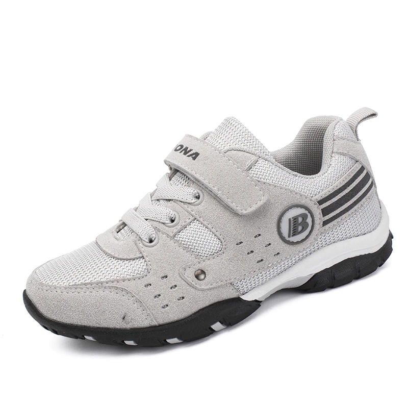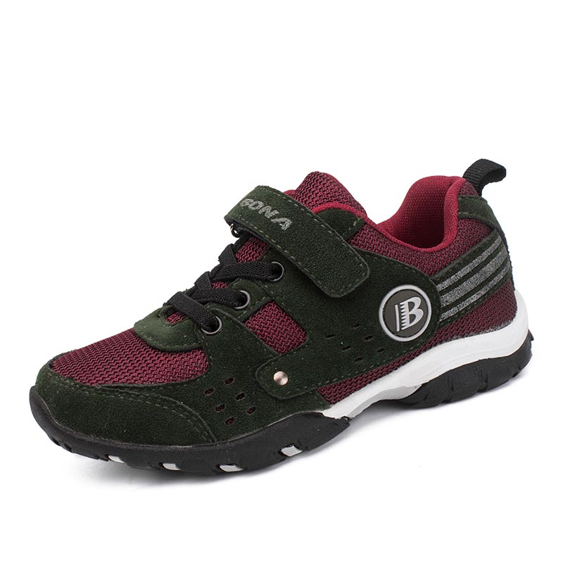 The Maus boys' sneaker is constructed with breathable air mesh and features a solid pattern. The interior is lined with soft cotton fabric. while the insole is made of cushioned EVA. A hook & loop closure ensures a perfect fit for your son. while the lightweight rubber outsole provides reliable traction. Perfect for spring and autumn. these shoes are sized to fit truly.