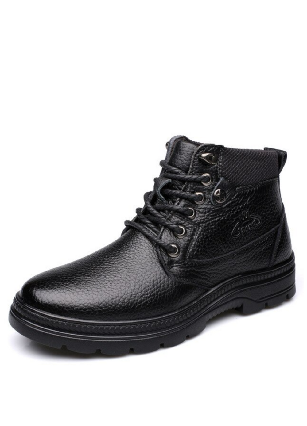 The Zappacosta Men's Winter Boots from Footens Shoes epitomize luxury and sophistication. Crafted with genuine cow leather. these ankle boots provide style and durability. The cotton fabric lining and rubber insole offer ultimate comfort. while the round toe and rubber outsole complete the perfect fit.