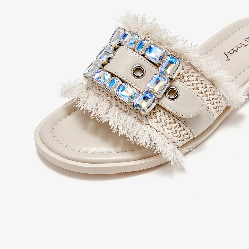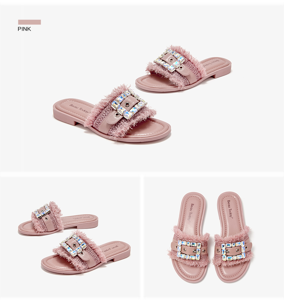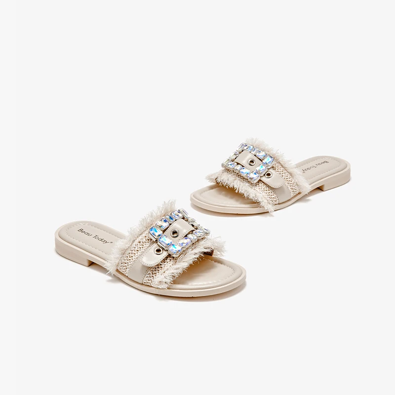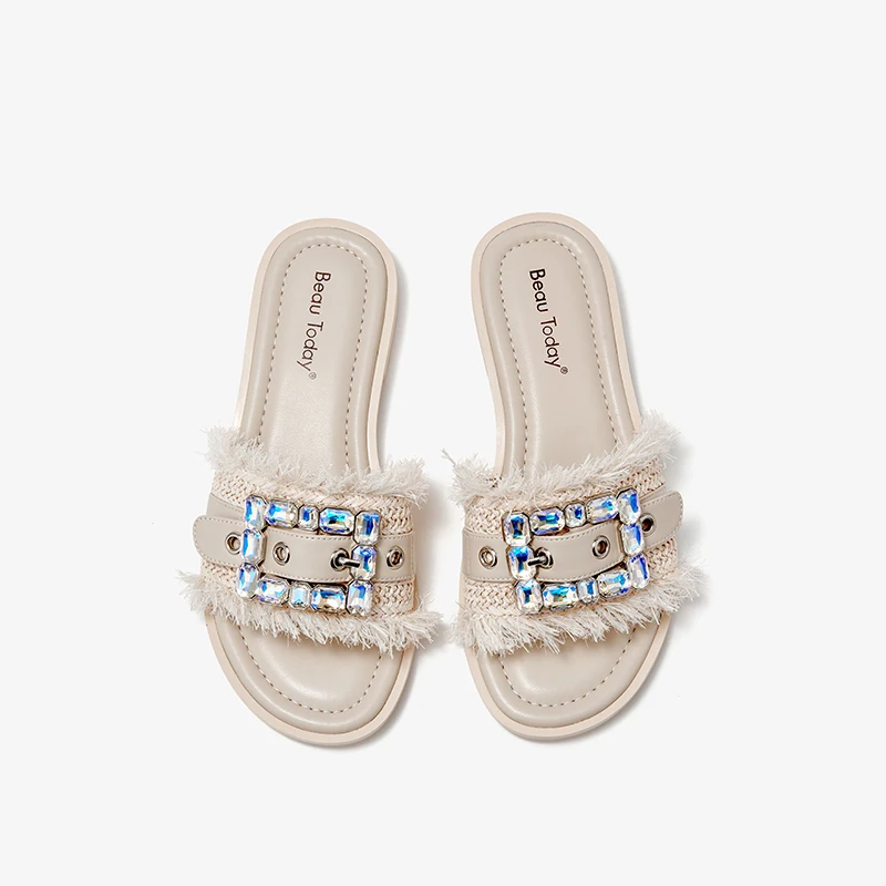 Elevate your summer style with Zulma Women's Open-Toe Leather Slipper by Footens Shoes. Crafted from genuine leather. these slippers offer comfort and sophistication. With a stylish metal decoration and available in caramel. pink. blue. and beige. these slippers are perfect for any occasion. Complete your British-style ensemble with the square heel and rubber outsole. Perfect for the outdoors during summer/spring.